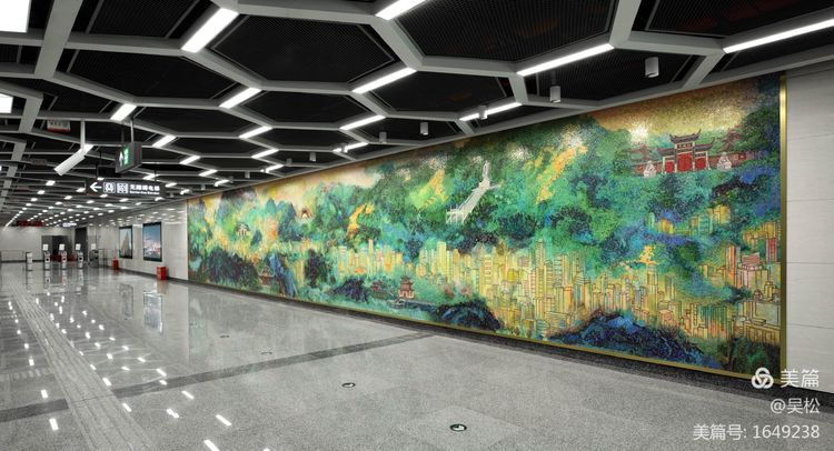 3、泉湖公园站《生态之城》马赛克镶嵌壁画,壁画规格:18X3.07米