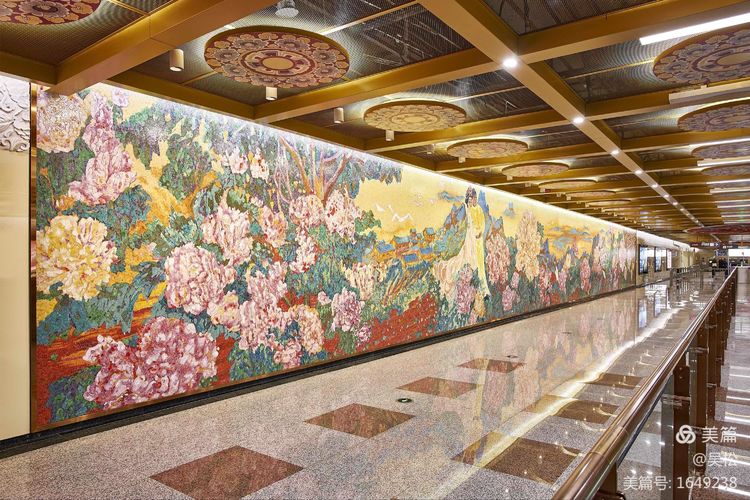 1、皇花园站《花重锦官城》马赛克镶嵌壁画,壁画规格:30.23X3.3米
