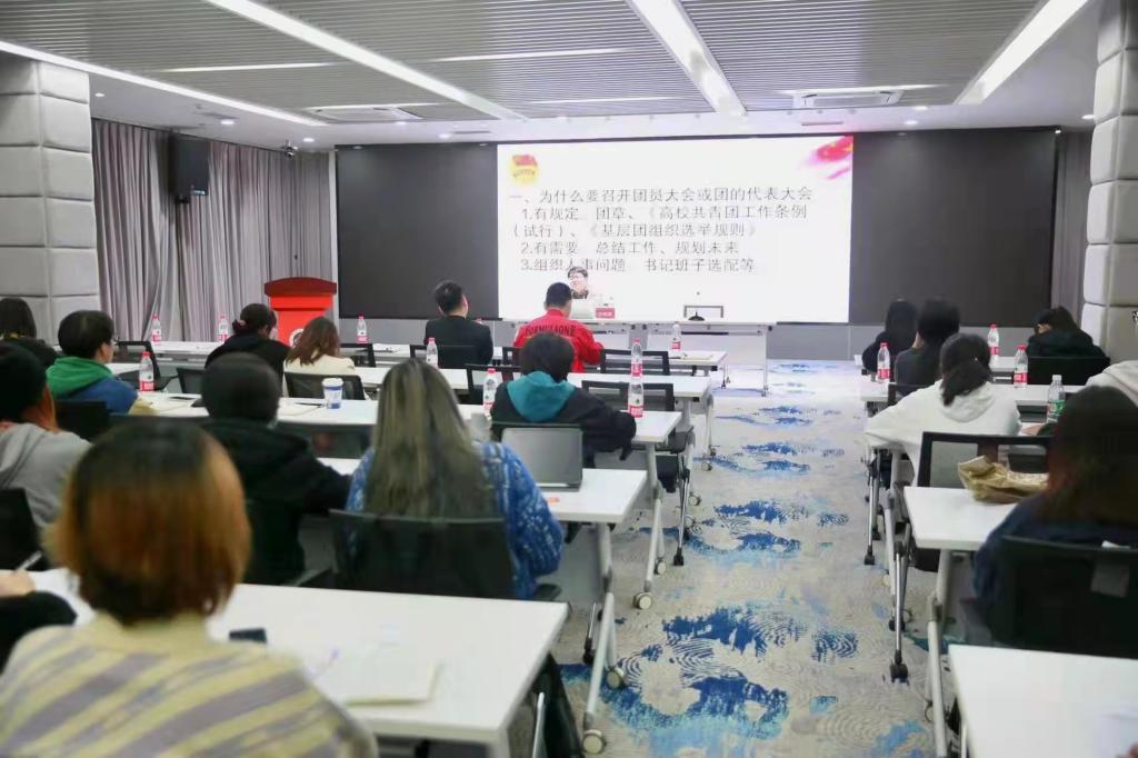 李洪博则从实际操作层面着手介绍了“怎么开团员大会和团的代表大会”,细致地为大家讲解了二级院系团代会的召开流程,就如何书写团代会报告、嘉宾致辞、请示、汇报等材料进行了经验分享和实例讲解,进一步提升了团学组织干部的政治素养。