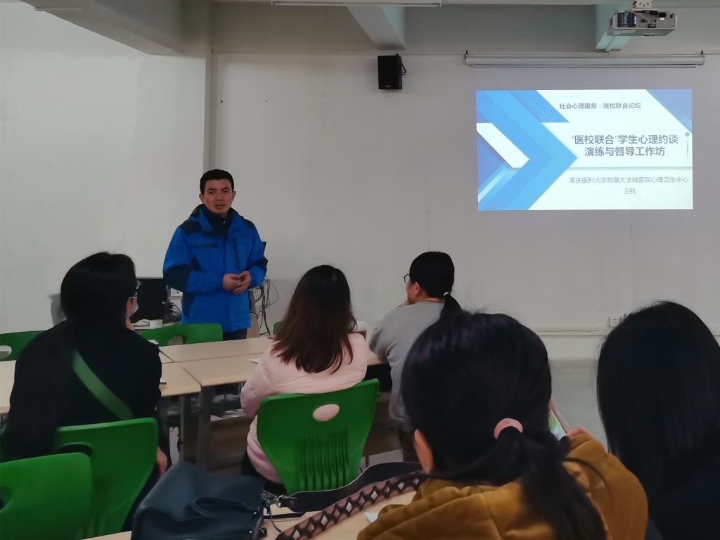 为顺利开展心理普查后的约谈筛查工作,提高学生工作队伍的心理工作水平,11月18日下午,学生处在虎溪校区就业创业指导中心召开医校联合心理约谈工作督导会。本次会议邀请了重庆医科大学附属大学城医院精神科副主任、副教授王我作为督导专家,学生处心理健康教育中心专兼职咨询师、部分参与约谈工作的辅导员参加了督导会。