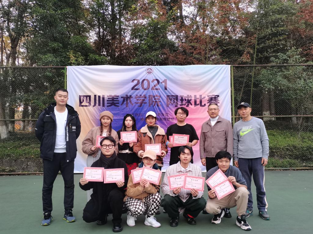 2021年四川美术学院大学生网球比赛从11月20日开赛,因天气原因,到12月1日才结束。比赛项目设有男子单打、女子单打和混合双打,比赛采用单循环制,在周末和平时课余时间进行比赛。经过多轮紧张、激烈的角逐,最后造型艺术学院廖登海获得男子单打第一名,影视动画学院陈力奇获得了第二名,艺术人文学院江思楠获得了第三名;中国画与书法艺术学院王芃元获得女子单打第一名,艺术人文学院邹言获得第二名,设计学院钟汶希获得第三名;设计学院王坤和中国画与书法艺术学院王芃元获得混合双打第一名,艺术人文学院江思楠和魏薇获得第二名,造型艺术学院廖登海和设计学院钟汶希获得第三名。