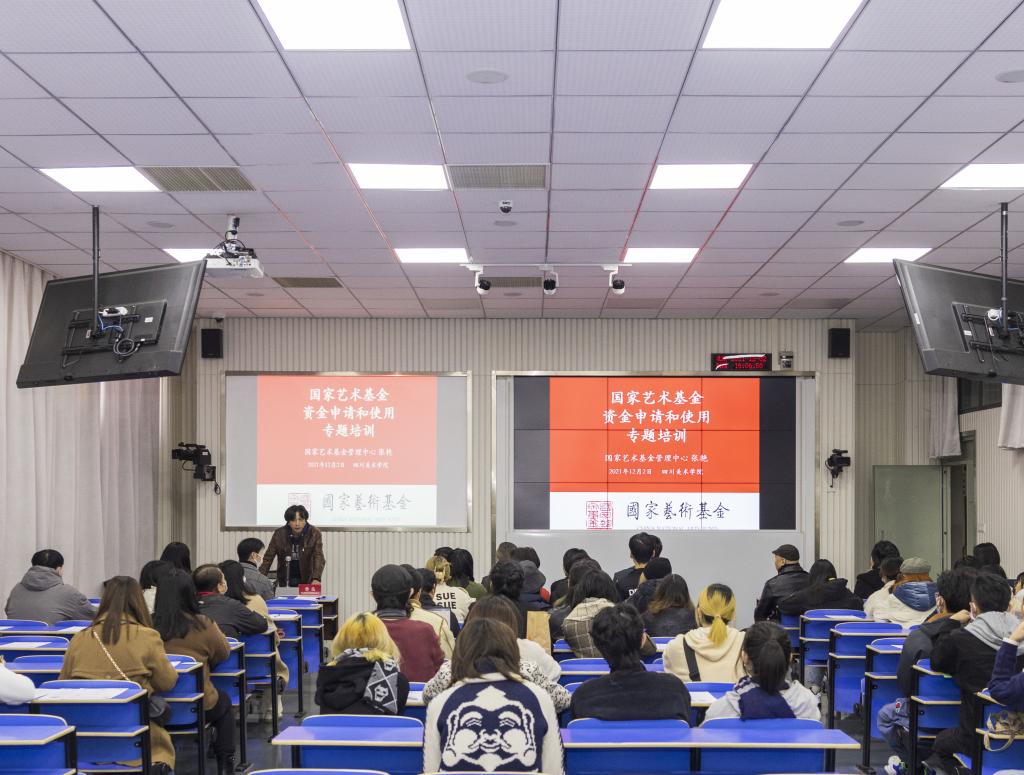 为进一步了解和用好国家艺术基金政策,推动资助项目高质量实施、经费高水平管理,增强在读港澳籍学生对国家艺术基金面向香港、澳门地区全面开放政策的了解和运用,在重庆市人民政府港澳事务办公室的支持下,四川美术学院、重庆海外联谊会和重庆市香港企业家联谊会共同主办,四川美术学院港澳台事务办公室承办的国家艺术基金申请和使用专题培训于12月2日在我校绘画楼举行。本次培训特别邀请了国家艺术基金管理中心财务处处长张艳作主讲。培训会由我校港澳办事务办公室主任曾岳主持。