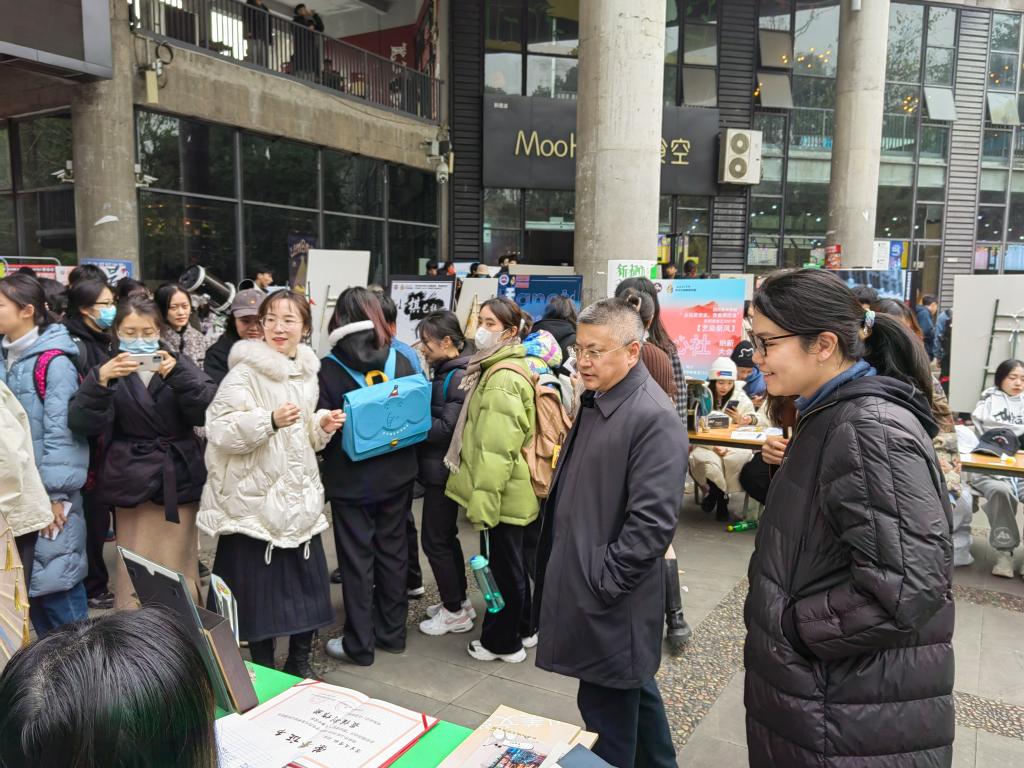 为满足我校大学生的兴趣爱好需求,丰富大学生的校园生活,促进学生社团的健康有序发展。12月6日中午,由校团委主办、校学生社团管理中心承办、四川美术学院各学生社团协办的四川美术学院2021年“永远跟党走,青春勇担当系列活动之“艺染新风”学生社团招新活动,在虎溪校区食堂前小广场火热开幕。党委书记唐青阳到活动现场指导。校团委老师、学生社团管理中心成员及各学生社团参与了此次招新活动。
