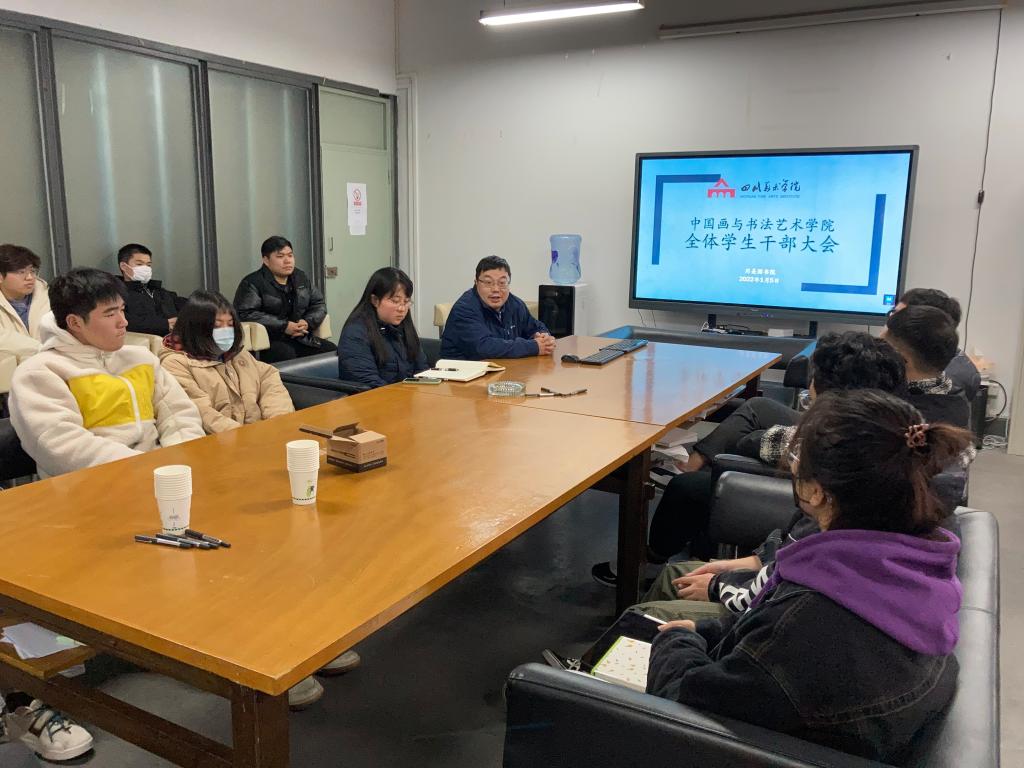寒假即将来临,为确保假期前各项工作的顺利开展和圆满结束,确保全体师生度过一个平安祥和的春节,1月5日,中国画与书法艺术学院召开2021—2022学年寒假前学生干部工作会议。党总支书记王劲书记主持会议,学院辅导员及学生会干部、各班班长、团支书参加会议。