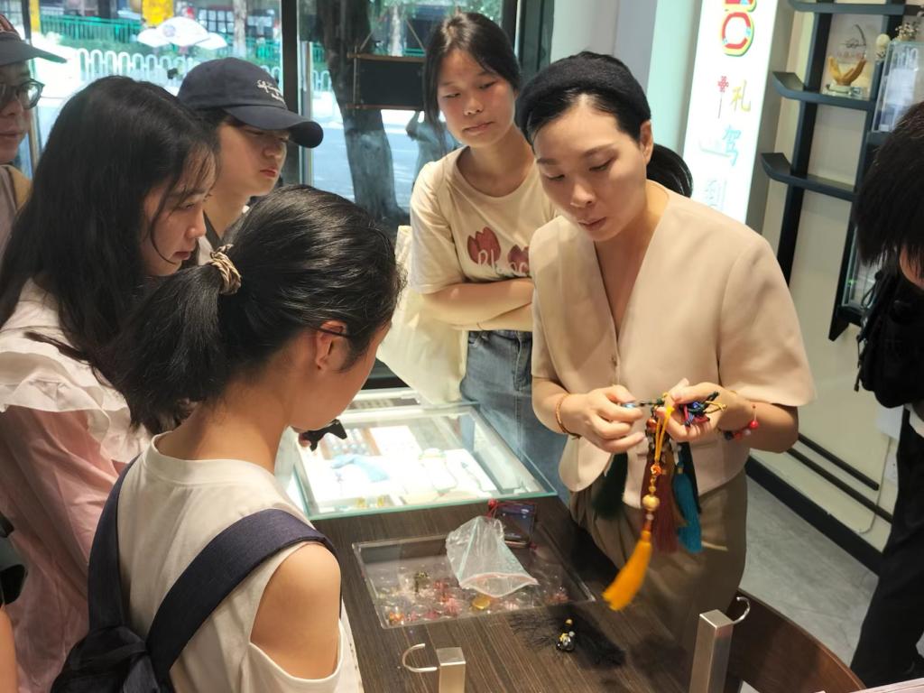 7月14日上午,实践团全体成员前往重庆菜乡结绳文化传播有限公司进行实地考察。菜乡结绳是涪陵区非物质文化遗产。实践团成员先后参观了菜乡巧娘手工艺品展销中心、重庆市涪陵区结绳艺术职业技能培训学校、菜乡结绳-匠人堂。了解了菜乡结绳的发展历史,观摩了其工艺流程,并与传承人和公司领导进行了座谈交流。下午,实践团成员前往凯高玩具(重庆)有限公司。该公司主要进行麦当劳、迪士尼、乐高、好莱坞影片等动漫人物的玩具研发和制造,也是冬奥会吉祥物冰墩墩的生产商之一。同学们先后参观了企业的彩绘车间、注塑车间、手办中心、研发中心等,了解产品制作流程。通过一天的考察学习,同学们认识到不同企业的发展理念和营销模式。