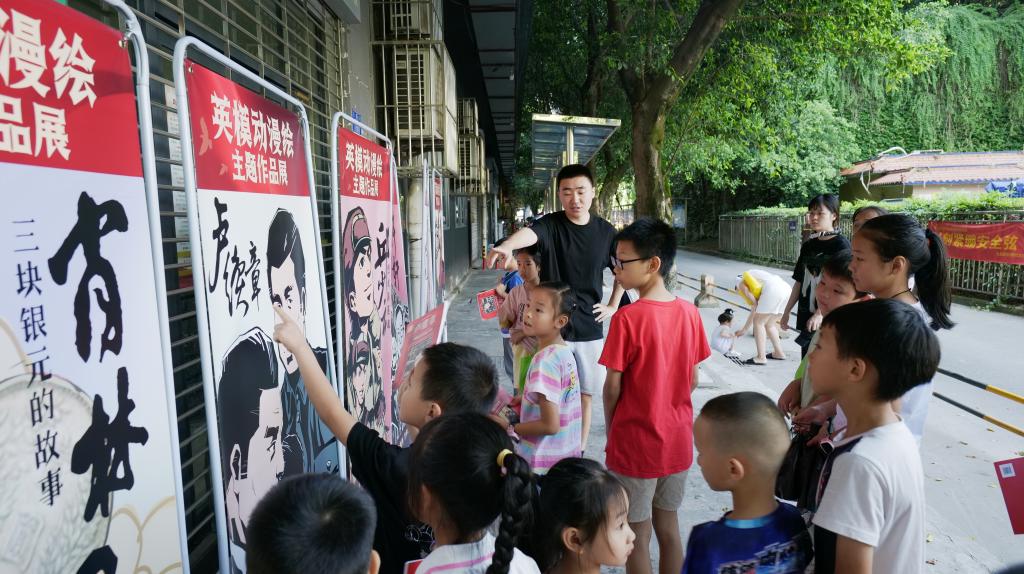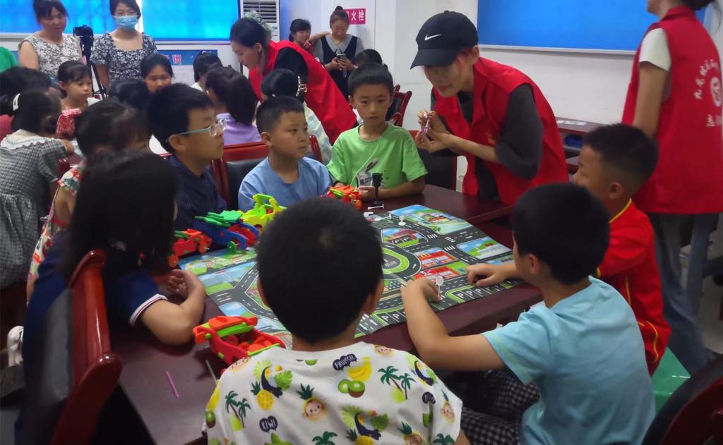 在九龙坡区老顶坡社区,实践团与九龙坡团区委、人防单位、老顶坡社区联合,面向社区少年儿童开展了以“防溺水、人防安全、消防安全”和英模精神宣讲为主题的多场讲座,并开展消防安全模型手工创作课。实践团在连续数日的41°C高温状态下,还遇到了6个小时的突然停电,团队成员仍然坚持在酷热中制作安全知识小教具、人防主题教育等工作,力求为社区儿童提供最优质的服务。