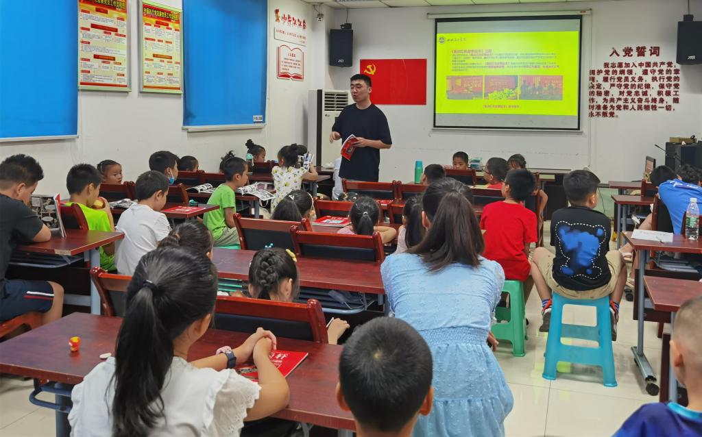 在酉阳县天馆乡,实践团结合当地实际,把乡村振兴与文艺下乡有机结合起来,将党史学习、乡村美育、文创设计、儿童暑期安全教育贯穿一线,开展了“英模动漫绘”重庆红色绘本主题展览、主题文化墙绘制、乡村美育课堂、防溺水主题讲座和绿茶优化包装设计等活动,积极助力乡村振兴。