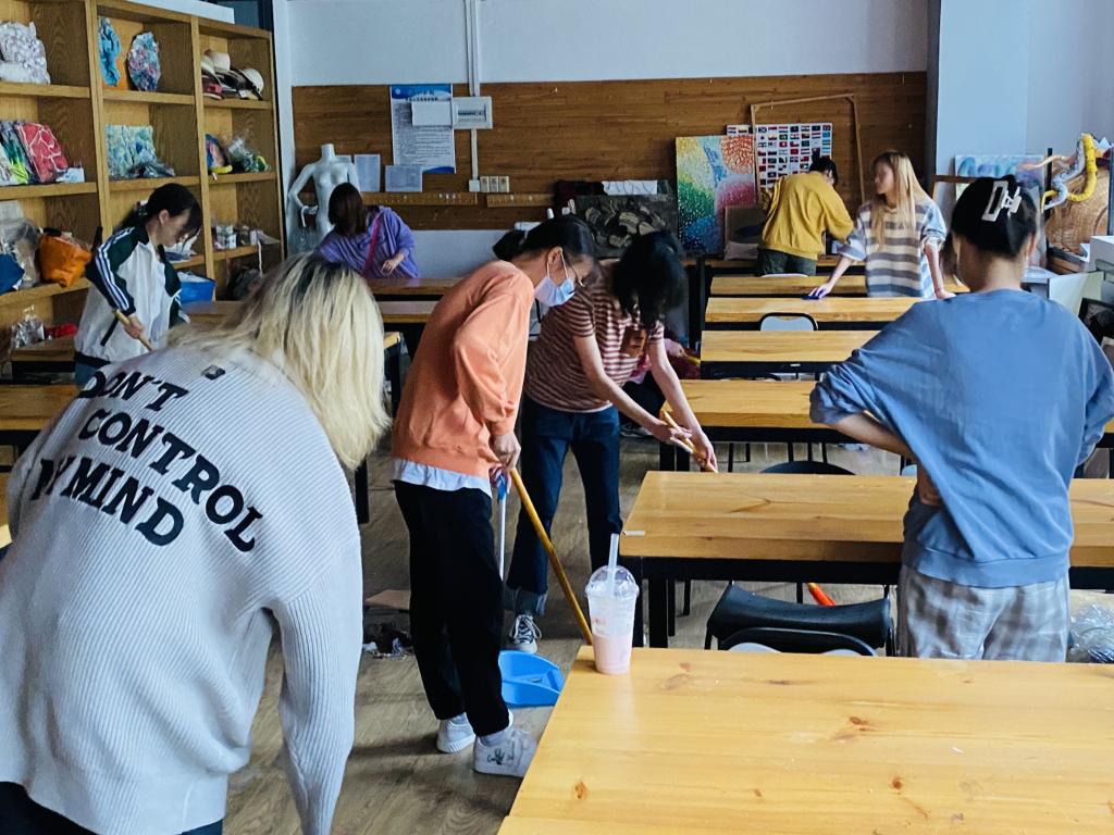 设计学院认真贯彻落实习近平总书记的重要讲话精神,将劳动教育作为必修课程,持续组织学生开展劳动实践活动。为了更好地调动同学们的劳动热情,培养劳动精神,为线下教学提供干净整洁舒适的教学环境,设计学院于9月23日下午在设计楼教学区域开展新学期劳动教育活动。本次活动以2022级新生为学长学姐打扫教室为主题。新同学们通过劳动实践,感受劳动魅力。