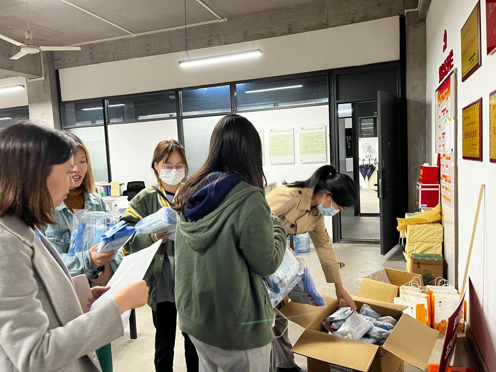 校园严格管理期间,设计学院领导班子成员和全体辅导员第一时间入驻校园,通过有序组织核酸、多次走访学生宿舍、发放口罩等防疫物资、发放水果与食物礼包、慰问困难学生、关注学生心理健康、关心校外学生安全等方式,向学生传递学校和学院的关心关爱,坚定学生打赢疫情防控歼灭战的信心。