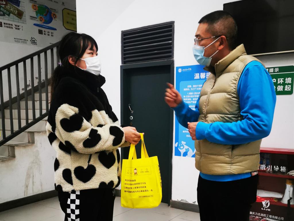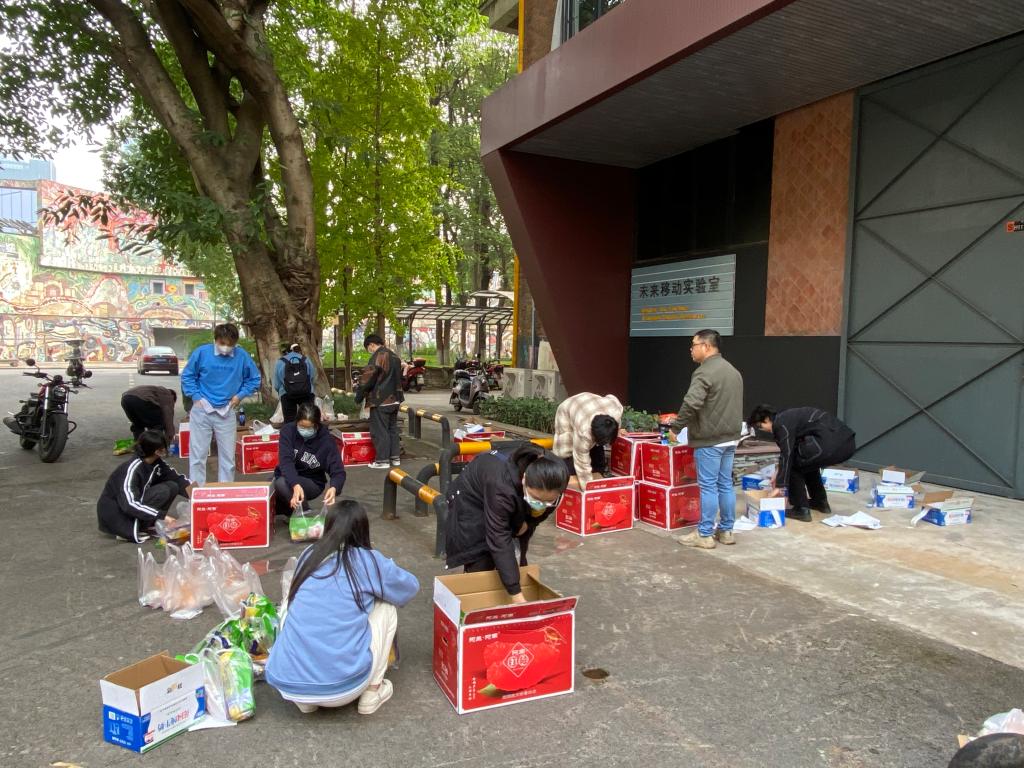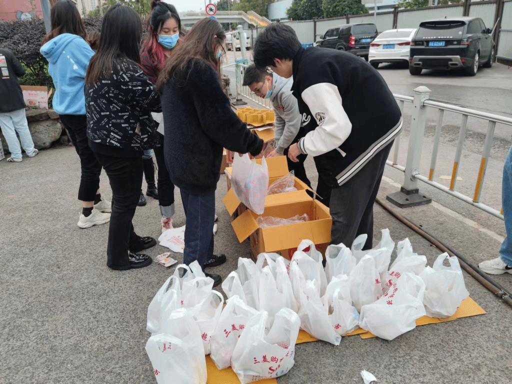 对于管控在小区,无法到校内取物品的同学,学院老师把物品送到小区门口,及时解决学生的生活学习用品。