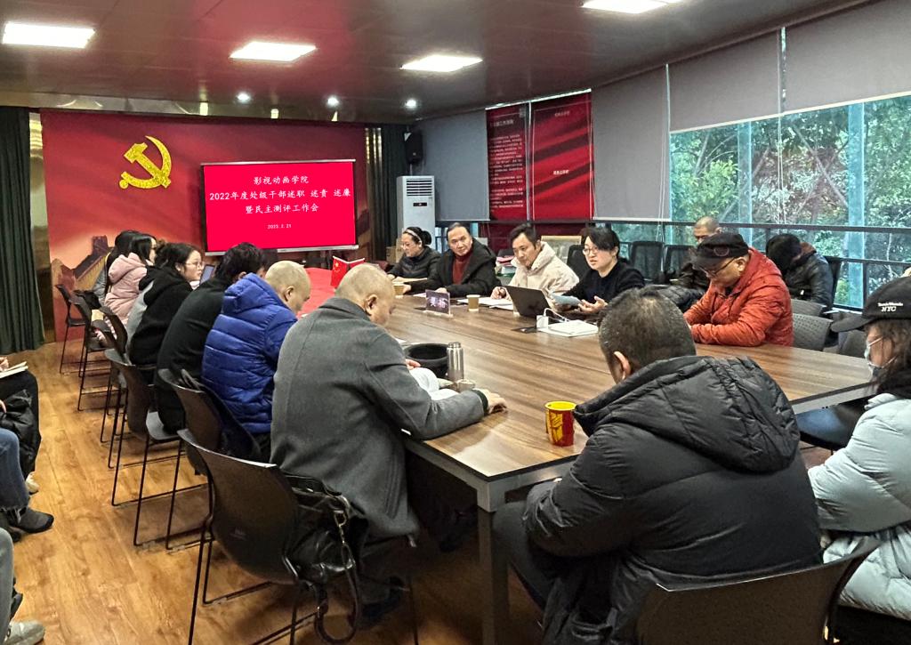 2月21日下午,影视动画学院在三楼会议室召开2022年度处级干部述职述责述廉暨民主测评工作会。学校党委组织部,学院领导班子、全体教职工参加了会议。会议由学院党总支副书记吴杨主持。