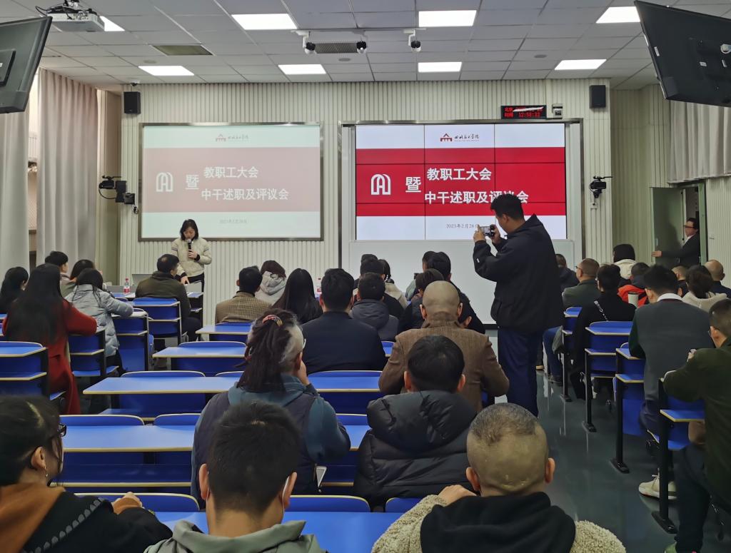 2月28日中午,造型艺术学院在绘画楼讲座教室HE208召开春季教职工会议暨2022年度处级干部述职及评议会。学校党委副书记、校长庞茂琨出席会议,学校党委组织部,学院领导班子、全体教职工参加了会议,会议由学院党总支书记韦芳主持。