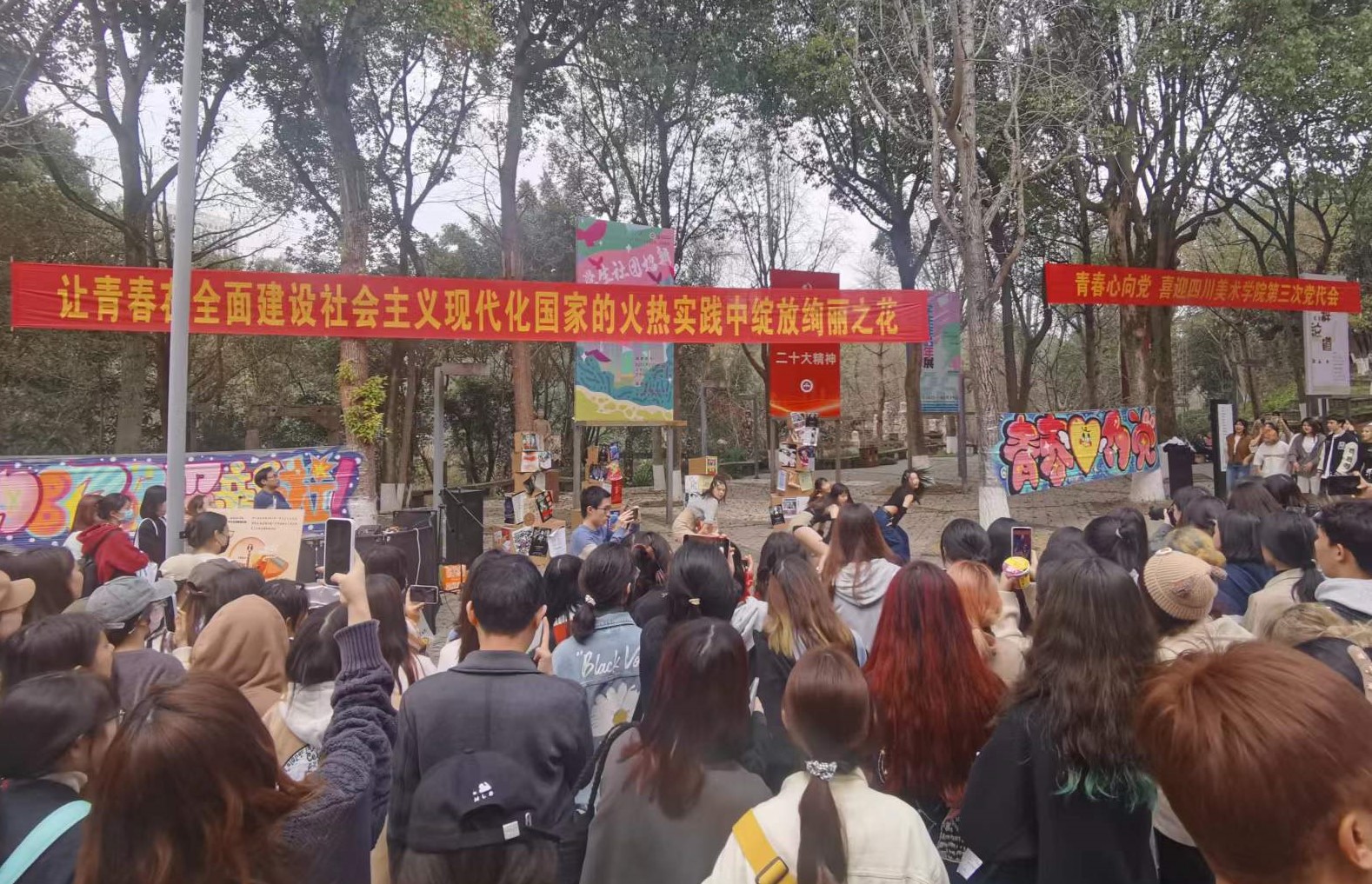 为喜迎学校第三次党代会胜利召开,营造健康向上的校园文化氛围,3月9日中午,由校团委主办、学生社团管理中心承办、各学生社团协办的四川美术学院2023年“学习二十大、永远跟党走、奋进新征程”学生社团招新活动,在虎溪校区食堂前小广场火热开幕。学校党委书记唐青阳、党委副书记左益到活动现场指导。校团委全体工作人员、学生社团管理中心、各学生社团、各院系师生共500余人参加了活动开幕式。