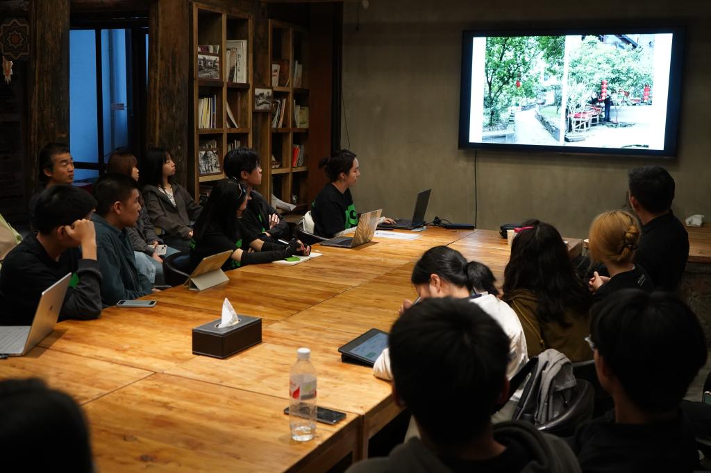 开课当天,四川美术学院雕塑系公共雕塑工作室副教授唐艳带领的15名大四学生也参与了联合教学活动。当天上午,同学们在村落及周边进行了走访及调研;下午同学们将当天调研的情况进行整理;当晚进行集中汇报。