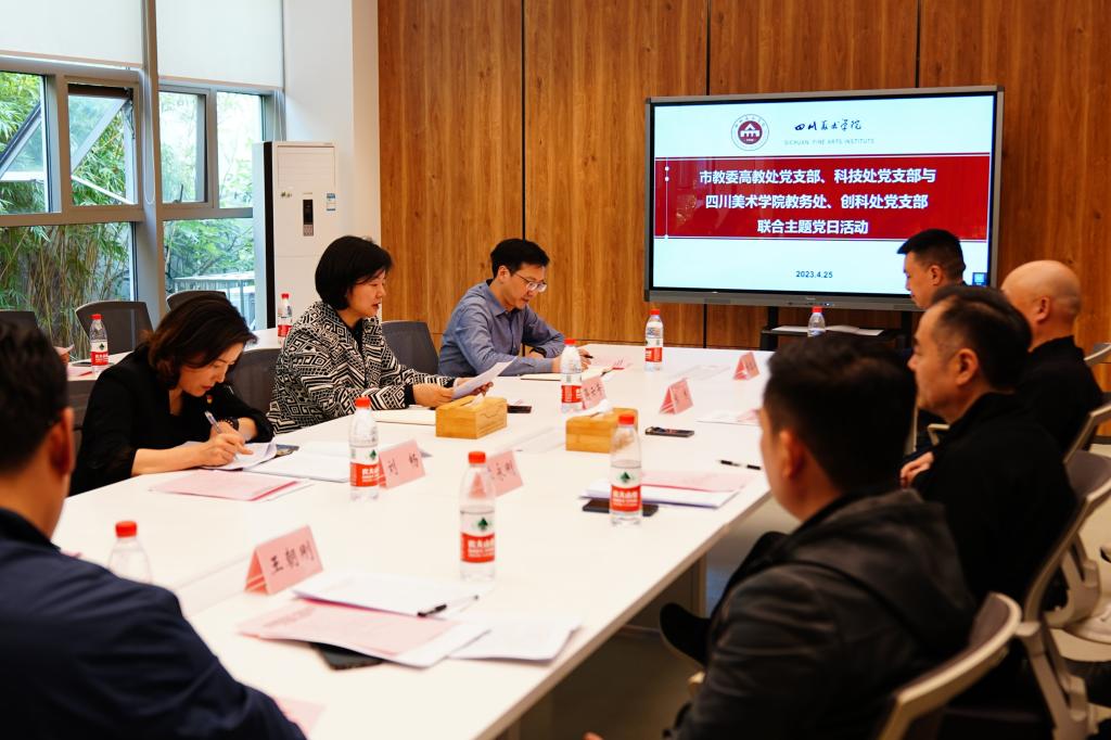 4月25日下午,重庆市教委高教处、科技处党支部与我校教务处、创科处党支部在我校联合开展主题党日活动。此次主题党日活动是在全党深入开展学习贯彻习近平新时代中国特色社会主义思想主题教育期间,由教育主管部门与高校职能处室联动,共同谋划推进教育高质量发展的特色活动。四川美术学院党委常委、副校长张杰,市教委高教处党支部书记、处长蒋云芳,科技处党支部书记、处长刘畅,市教委高教处党支部、科技处党支部和我校教务处党支部、创科处党支部党员同志,以及学校相关部门、二级学院同志参加了活动。