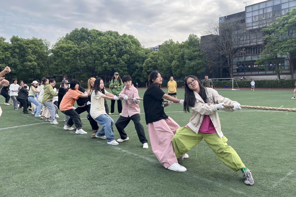 设计学院始终坚持五育并举,举办丰富多样的文体活动,促进德育、智育、体育、美育和劳动教育有机融合,实现学生德智体美劳全面发展。为进一步丰富校园文化活动,增强班集体的凝聚力,提升学生的身体素质,鼓励学生发扬自尊自信、勇敢顽强的体育精神,培养团队合作、有责任感的品格,4月26日下午,设计学院在运动场开展拔河比赛。本次拔河比赛的参与对象为2022级本科生,共13个班级,约300名学生。