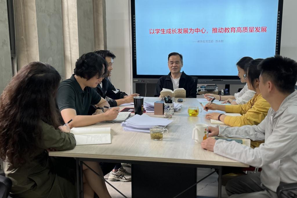 机关党委教务处党支部书记苏永刚同志,结合学校教育教学工作实际和第三次党代会精神,以《以学生成长发展为中心推动教育高质量发展》为题,给支部全体党员上了一堂有深度、有广度的党课。以开展主题教育活动的意义和总体要求作为切入点,以学校第三次党代会提出的“七个一流目标”“九大战略”“党的建设新的伟大工程”为主线,深入浅出地为党员同志们讲解。同时,他要求党员同志们要进一步全面贯彻落实习近平总书记关于教育的重要论述,深刻把握新时代高等教育改革发展的新形势新要求,切实增强全面落实立德树人根本任务、建设高质量本科教育的紧迫感和责任感。