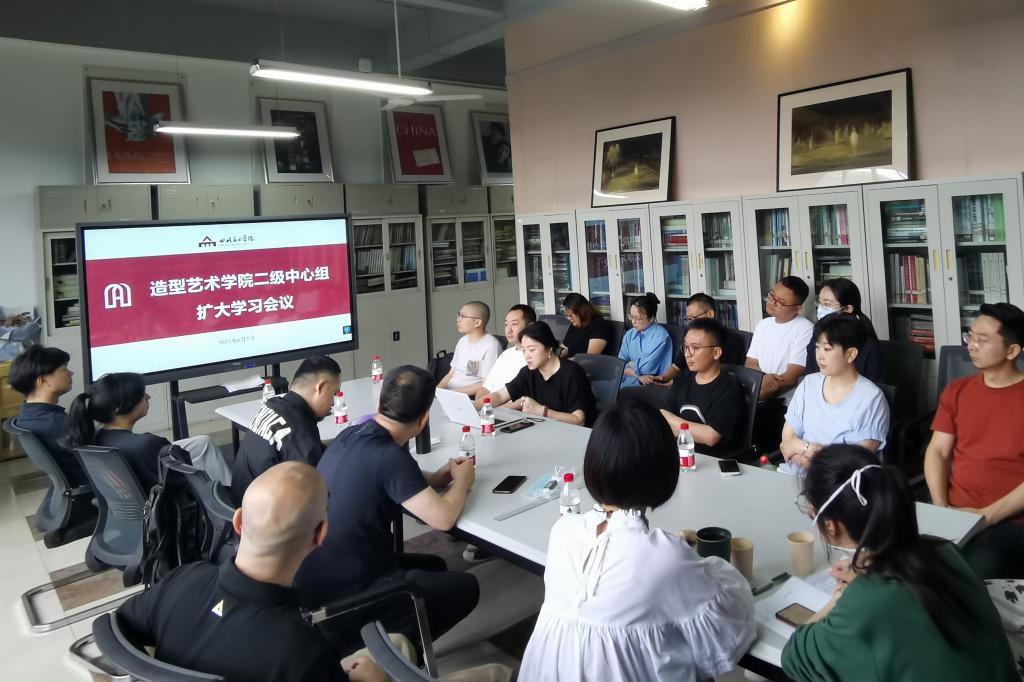 6月1日上午,造型艺术学院党总支召开二级中心组(扩大)学习会,学习学校2023年全面从严治党大会暨作风建设动员会精神 。造型艺术学院党政班子成员、各党支部书记、各系主任、副系主任参加学习,会议由造型艺术学院党总支书记韦芳主持。