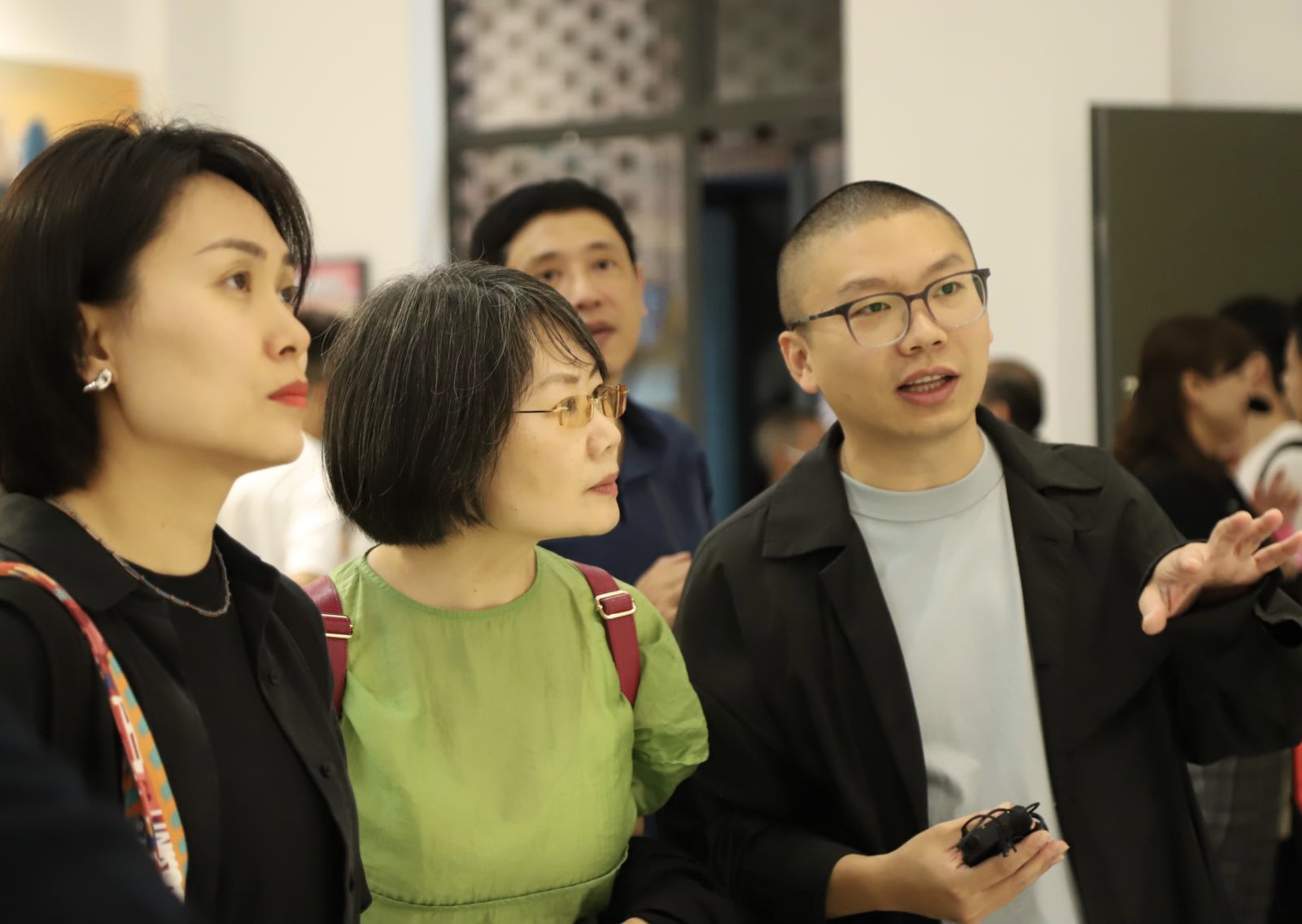 启动仪式完毕后,由各系主任引导嘉宾到“开放的六月”展览现场,并主持嘉宾与学生对谈。学生为来宾介绍自己的作品创作理念、创作体系、创作过程,以及对创作的思考等。现场的每一件作品都讲述着学生热爱艺术、投身艺术、执着艺术的成长故事,展现了浓郁的人文情怀,以及学生对社会及生存现状的时代表达。