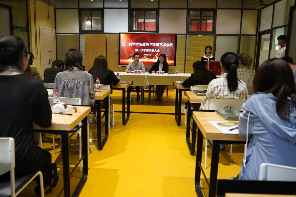 大会审议通过了《四川美术学院建筑与环境艺术学院学生会工作报告(草案)》《四川美术学院建筑与环境艺术学院校级学生代表大会代表暨常任代表选举办法(草案)》《四川美术学院建筑与环境艺术学院学生会主席团、常设机构成员选举办法(草案)》。本着民主、充分酝酿的原则,通过不记名投票的方式,选举产生了建筑与环境艺术学院新一届学生会主席团名单、学生代表大会常设机构成员名单,以及出席校级学生代表大会的代表名单。