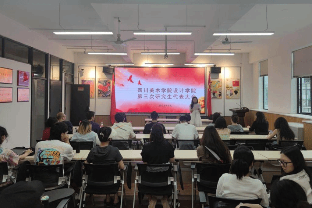 6月14日,四川美术学院设计学院第三次研究生代表大会在G栋402会议室召开。设计学院党总支书记陈勇、副院长蒋金辰、研究生辅导员唐剑、苏盼盼,第二届研究生会主席团和研究生代表参加本次会议。会议由研究生朱璐瑶主持。