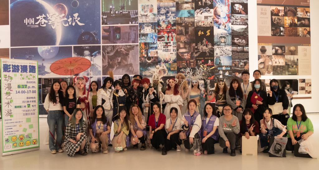 6月17日下午,由学校教务处、影视动画学院、美术馆联合举办的“开放的六月”主题日——“影游漫路”动漫艺术游活动在四川美术学院美术馆如期进行,活动由“鹰飞之城、雀跃山河”濒危鸟类野保小课堂动漫工坊、影视特效化妆展示及动漫角色扮演和“英模动漫绘”互动填色及动漫头像绘制工坊三个版块组成。