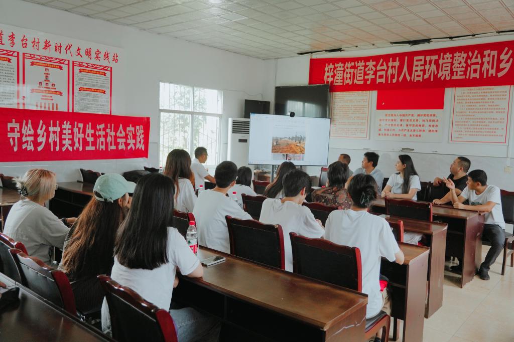 在李台村开设的座谈会上,村支书陈富圣娓娓展述了村庄基本情况及“旭日东升”振兴计划的宏伟蓝图,计划以东升片区的生态环境优势结合当地茶、菌、稻特产,打造独有品牌。蒋智丽表示,乡村振兴需要人才引进、创意驱动,本次实践活动希冀为乡村振兴发展提供智力支持。助力乡村振兴,扎根乡村,投身乡村发展事业,是当代青年的必修课,是响应习近平总书记号召,培养有理想、敢担当、能吃苦、肯奋斗新时代好青年重要举措。随后,团队成员各抒己见,提出村庄规划改造的初步想法。