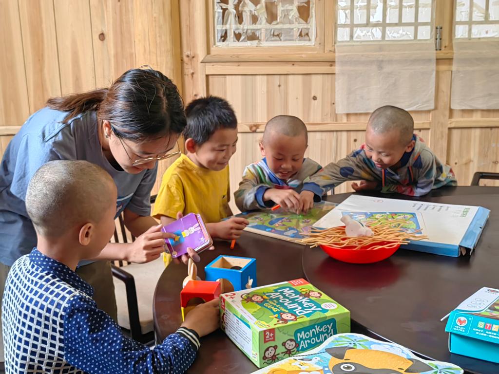 7月11日—12日,四川美术学院影视动画学院的研究生调研团一行10人来到第二个活动地点——驻村书记川美张剑老师所在的花田乡中心村,再次开展以“乡村红色益智动漫游戏”为主题的调研和创作活动。这次活动服务了近30余名3-17岁的乡村儿童,参与者年龄跨度大,并多以一个家庭的数个兄弟姐妹群体为特征,对于单人游玩和多人混龄游戏方式都有强烈的兴趣和需求。活动中的主题棋类卡牌类、社交互动类、立体装置类的多款特色益智动漫桌游,迅速得到了不同年龄段的孩子的热情喜爱和主动探索。团队成员发现,虽然绝大多数的乡村孩子都是第一次接触到益智动漫桌游,但大家非常喜欢这种融故事性、游戏性和社交互动于一体的当代互动交流方式。