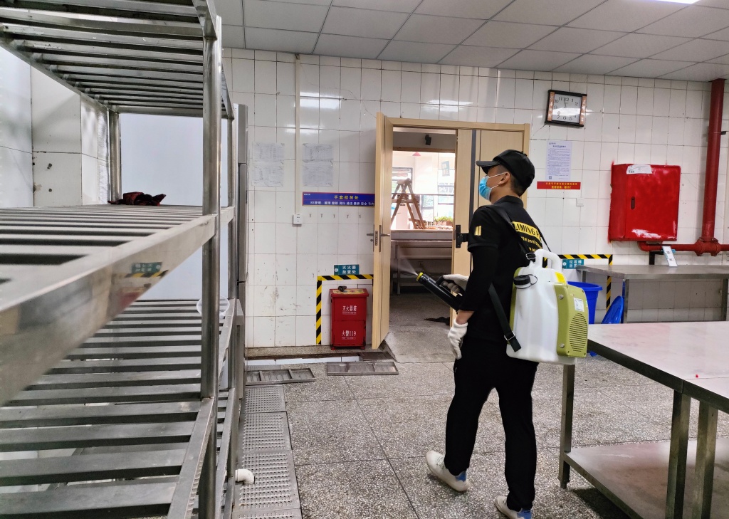 为贯彻落实《重庆市教育委员会关于进一步加强高校食堂管理工作的通知》《重庆市教育委员会关于开展全市高校师生满意食堂创建的通知》等上级文件要求,积极响应重庆教育后勤协会《关于加强暑期食堂病媒生物集中防制工作的倡议书》,有效降低和控制病媒生物密度,创造卫生健康的食堂环境,利用暑期师生离校和食堂装修升级的时机,基建后勤处于9月初组织开展了两校区学生食堂、教工食堂及周边病媒防制工作,为2023年秋季学期开学迎新做好准备。