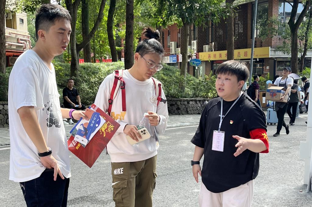 刘铭是2023级设计学研究生,她提前一天从山东赶回学校,积极协助辅导员老师开展迎新工作。在问及刘铭为何会对迎新志愿服务工作如此认真时,刘铭表示:“川美是我的母校,我本科在这里度过了四年,对学校、学院和周边的情况都更为了解,迎新需要我这种熟悉校园环境和学院情况的同学来帮忙。同时,我作为一名学生党员,我愿意也乐于在各种志愿服务活动中实现自己的价值,我希望在空余时间为身边的人做力所能及的事情,真正发挥一个党员的先锋模范作用。”说完,刘铭脸上露出灿烂的笑容,继续投入新生注册报到工作中。她胸前的党徽闪闪发光。