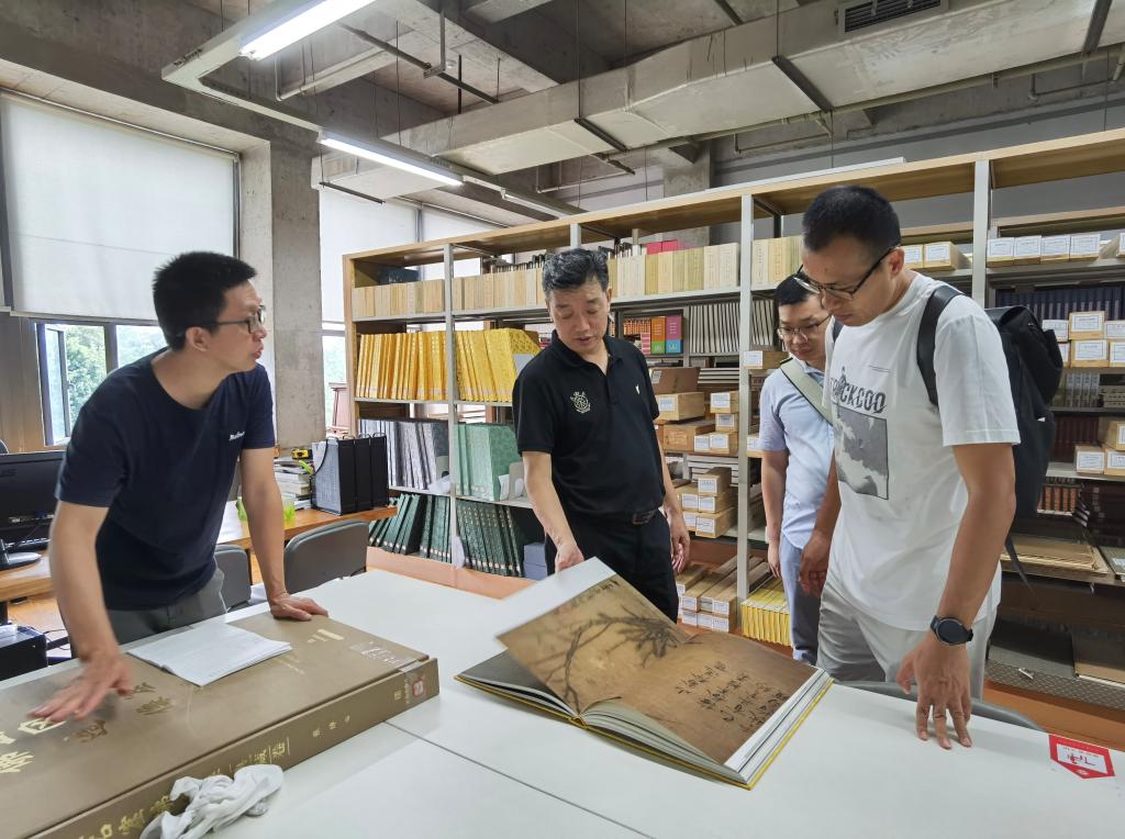 近日,国防科技大学图书馆副馆长杨磊一行来我校图书馆参观。我校图书馆副馆长屈波热情接待,陪同客人参观了图书馆艺评家专架库、特藏室和咖啡厅等馆内空间。