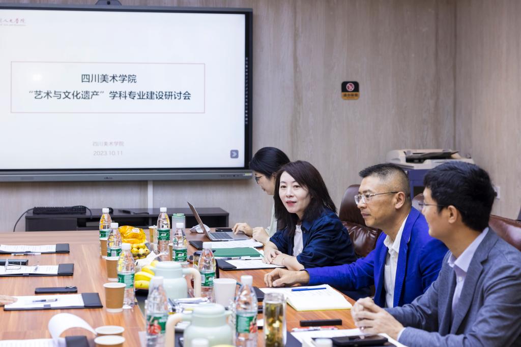 10月11日,“艺术与文化遗产”学科专业建设研讨会在艺术人文学院会议室举办。本次研讨会是在艺术学科建设背景下,结合学院大学科发展要求、贯通学校人才资源,建构理论主阵地的汇聚研讨。国家非物质文化遗产展览展示研究中心执行主任、中国非物质文化遗产研究院学术院长孙冬宁,国家非物质文化遗产展览展示研究中心(华南)基地学术委员会主任、广东省文化和旅游厅原一级巡视员陈杭,广东轻工非遗学院执行院长桂元龙、艺术人文学院党总支书记杨茂森、院长王天祥,学院教师和校内从事文化遗产相关研究的教师参加会议。艺术人文学院副院长董虹霞主持。