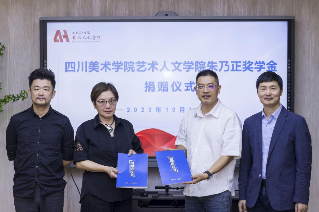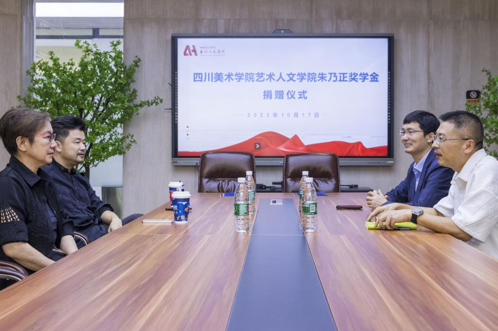 10月17日上午,艺术人文学院“朱乃正奖学金”捐赠签约仪式在学院会议室举行。会议由艺术人文学院党总支书记、副院长杨茂森主持。捐赠人、朱乃正艺术研究中心主任曹星原,艺术人文学院院长王天祥、艺术教育学院副院长尹丹等参加捐赠签约仪式。