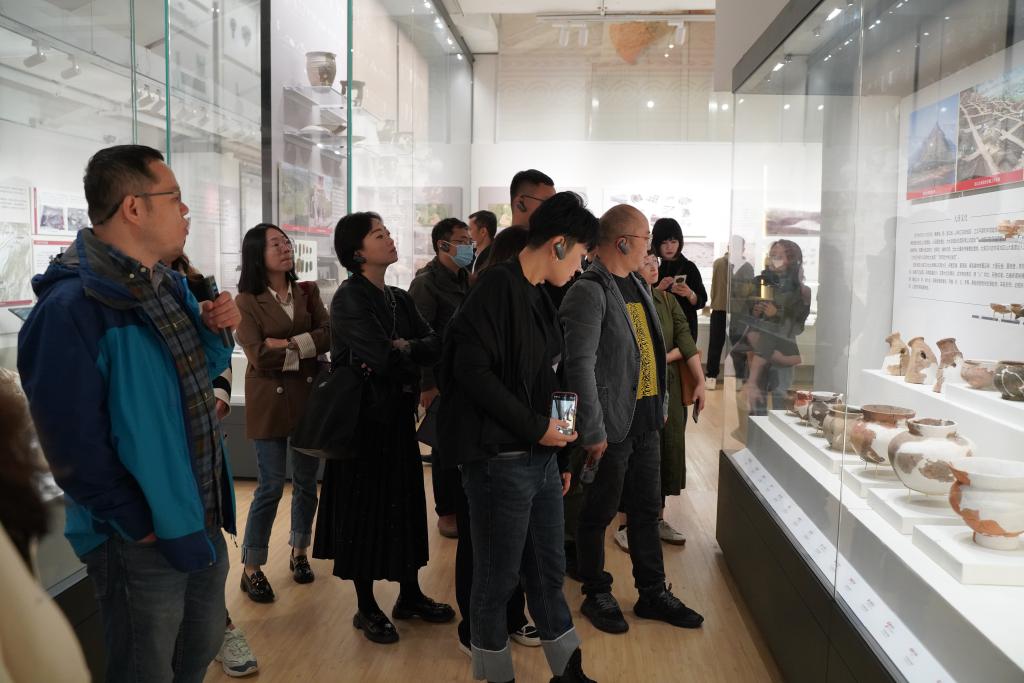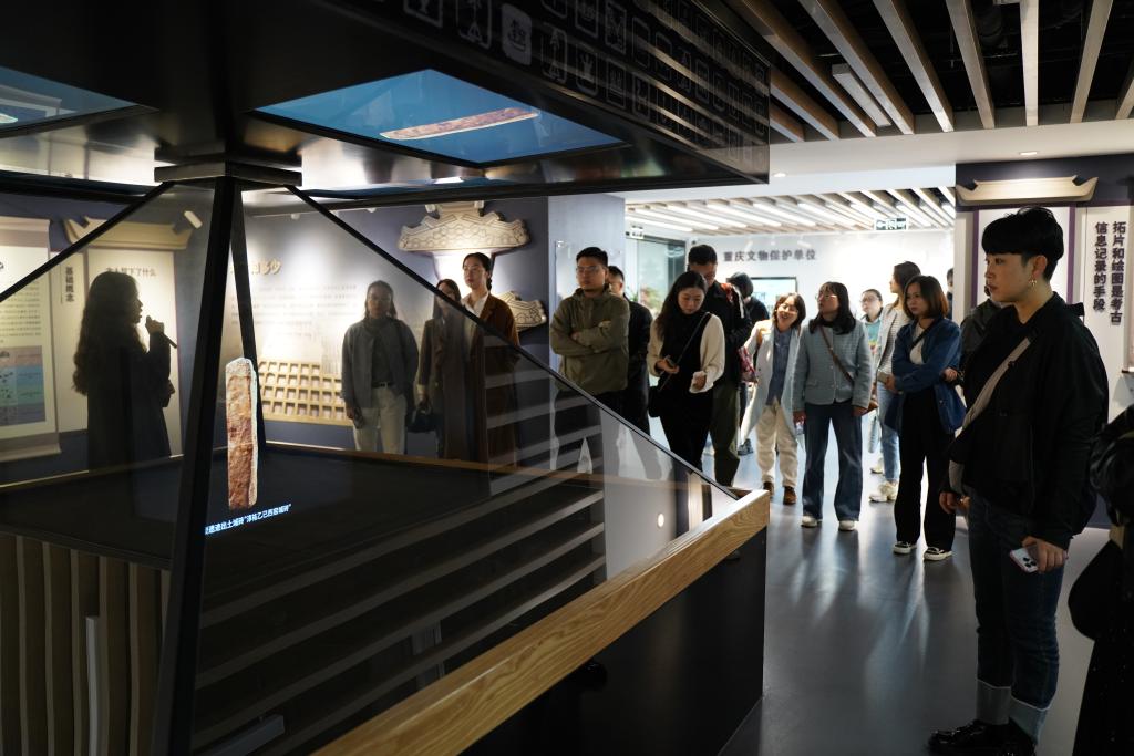 重庆市文物考古研究院党总支书记周大庆、副院长方刚及修复所和公众考古的工作人员陪同参观了重庆市文物考古研究院“三馆一院”——考古虚拟展示体验馆、重庆考古标本陈列馆、重庆故事馆、枇杷山书院。周大庆介绍研究院作为市级专业文物考古机构,积极推动文物事业“双创”发展的工作路径,围绕“调查、发掘、研究”考古一条龙,深化“修复、阐释、展示”保护一体化,拓展“文创、研学、文旅”利用一条线,推进合理适度利用,增强文化有效供给,致力于打造考古机构文物活化利用新样板。通过“1+5”的理念,做好“考古+库房”“考古+科技”“考古+传播”“考古+旅游”“考古+市场”,最大程度释放文物魅力。