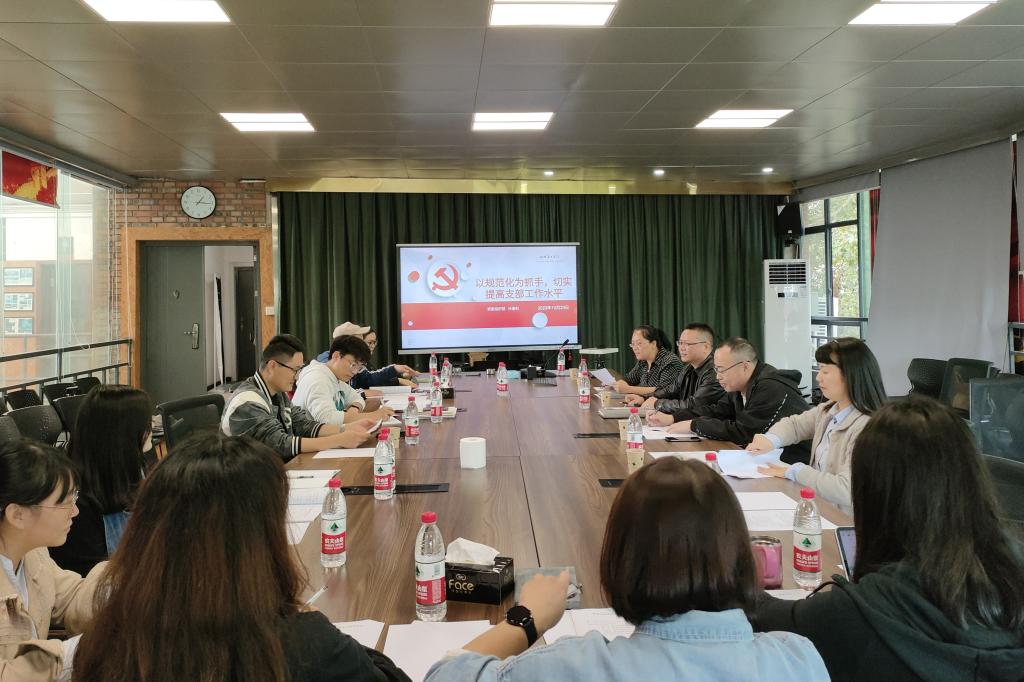 会议集中学习了《中国共产党普通高等学校基层党组织工作条例》《中国共产党支部工作条例(试行)》和《中国共产党发展党员工作细则》,明确当前学院党建工作情况、工作任务和工作职责。党务干部们交流讨论开展党建工作经验,就材料撰写和党表填写规范进行解读。