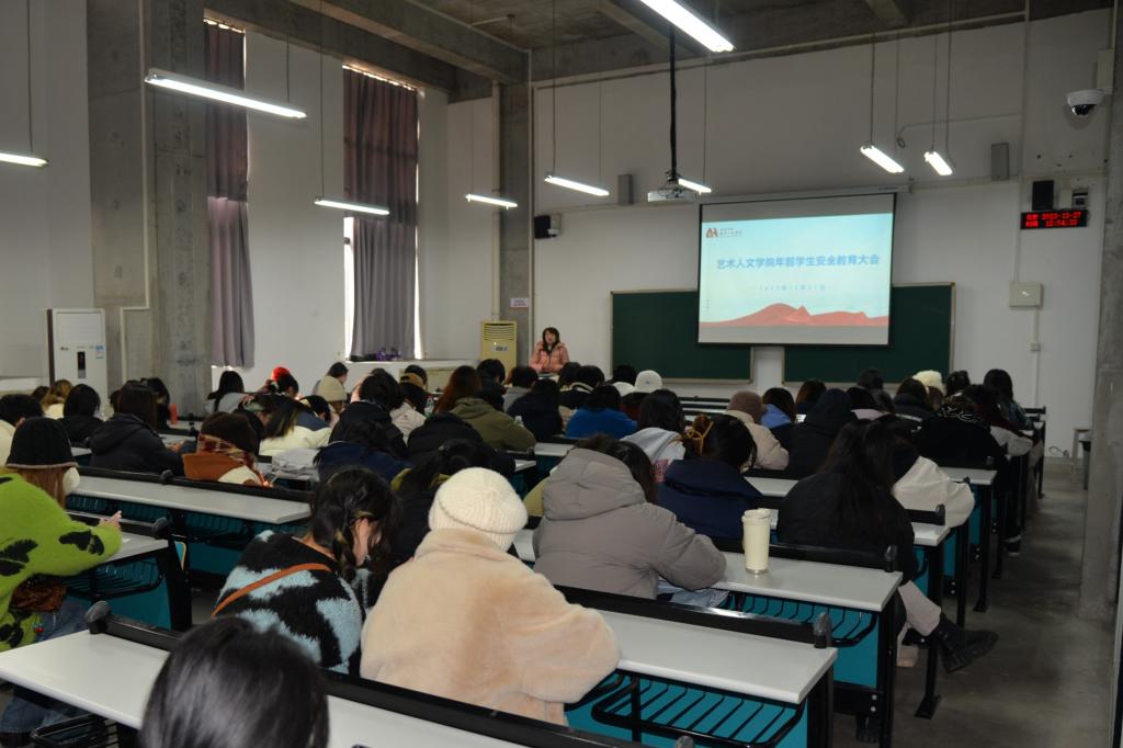 12月27日,艺术人文学院在设计楼举行了学生安全教育大会,辅导员从疫情安全、食品安全、心理安全、消防安全、网络安全等方面进行强调,引导同学们筑牢安全防线,增强个人防范意识。叮嘱大家在假期期间尽量避免单独出行,外出与家人保持联系,出行遵守交通规则,注意交通安全,提醒和给予同学们相关的指导和建议。