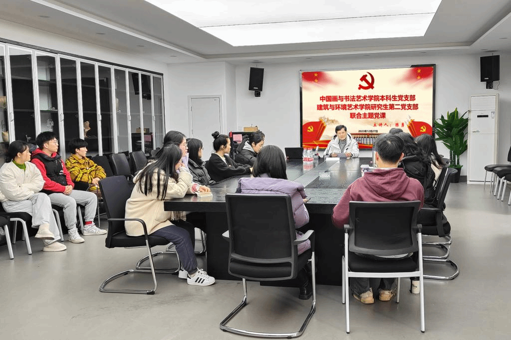 12月27日,中国画与书法艺术学院本科生党支部、建筑与环境艺术学院研究生第二党支部在设计学院共同开展“中国共产党为什么能”的专题党课学习,本次党课由学校党委委员、设计学院党总支书记陈勇主讲。