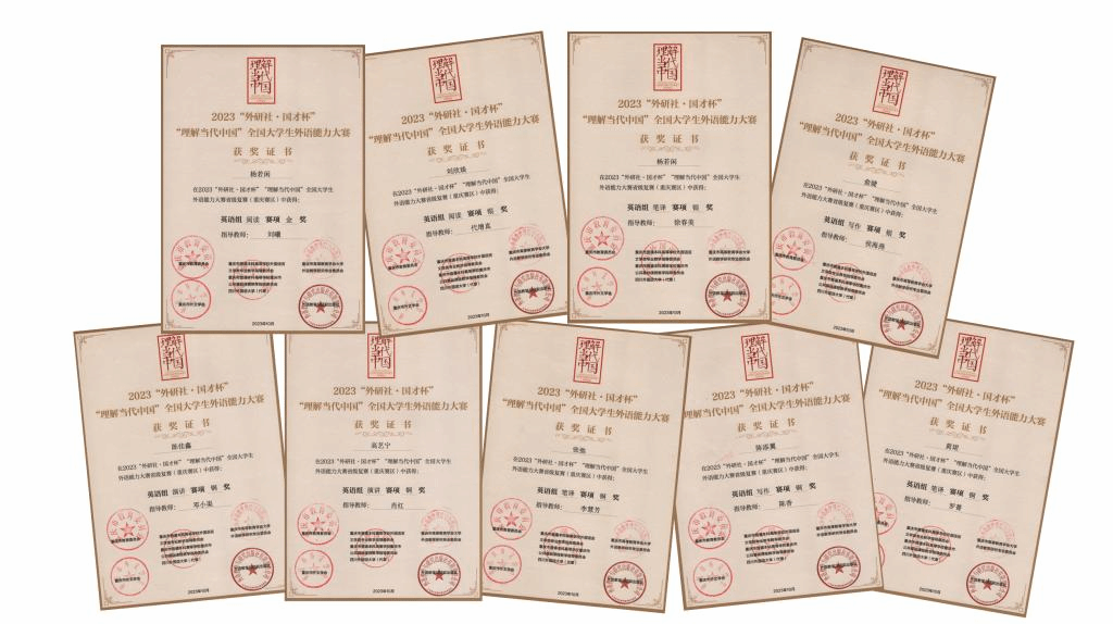 通识学院英语教学部历来重视学生的语言能力培养和个人价值塑造,在夯实学生各项语言技能的基础上,积极引导和指导学生参与各项全国及地方外语类赛事,以赛促学,沟通交流,学以致用,近年来成绩显著。本次大赛重庆市选拔阶段我校9位优秀选手分获省级金奖1名(杨若闲,全市排名第2,晋级国赛),银奖3名(刘欣琰等),铜奖5名(陈佳鑫等)。
