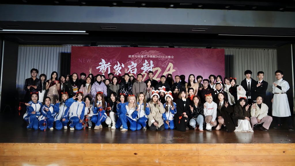 晚会最后,以全体表演人员青春洋溢的大合唱《明天会更好+桃花朵朵开》为此次晚会画上圆满的句号。2024年,建筑与环境艺术学院将继续与师生们携手前进,接续奋斗,迎接更加灿烂的明天。