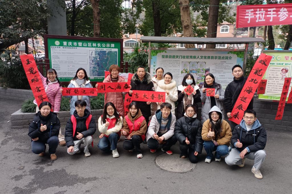 12月25日下午,2022级书法1班团支部在璧山区天门社区开展“服务市民”新春行动。