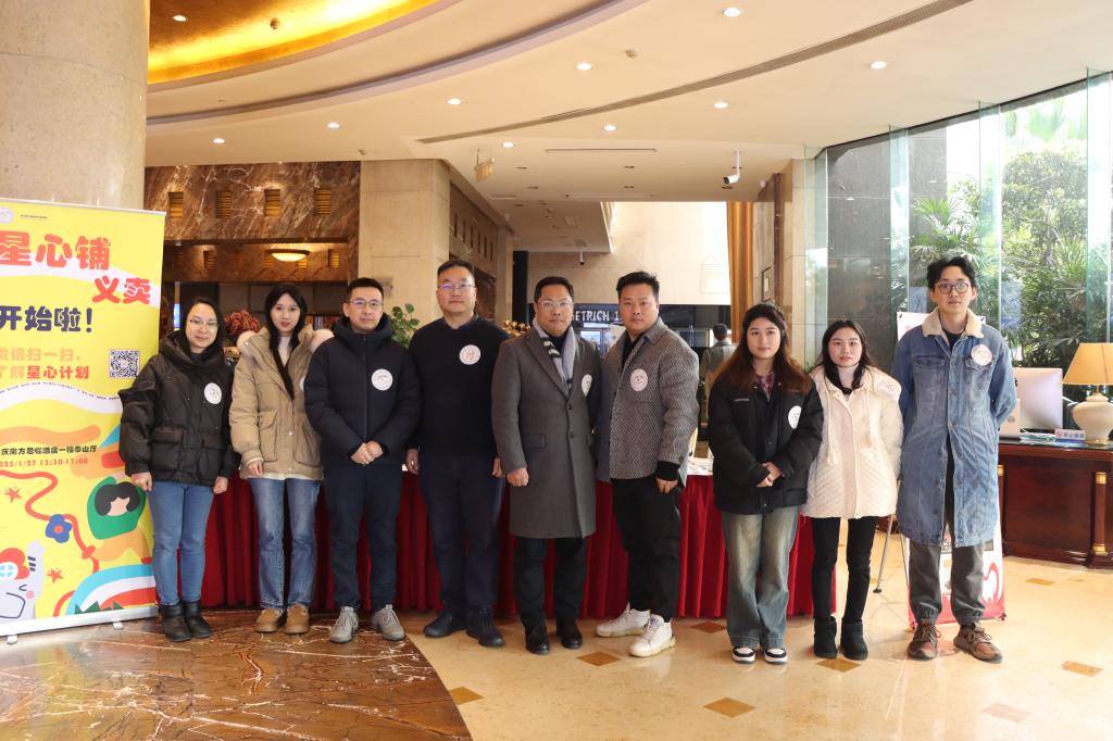 1月27日,建筑与环境艺术学院“星心计划“公益组织联合重庆儿童救助基金会心念爱心基金在九龙坡区南方君临酒店举行了一场”星心铺”义卖社会实践活动。此次活动旨在推动社会对孤独症等心智障碍群体的认知和了解,同时为孤独症等心智障碍群体家庭筹得善款。