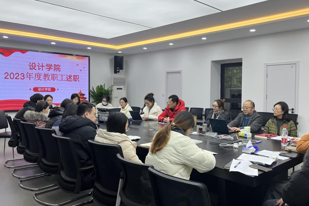 1月28日至31日,设计学院召开2023年度教职工述职大会。学院手工艺术系、艺术设计学系、数字媒体艺术系、视觉传达设计系、服装与服饰设计系、工业设计与产品设计系及办公室工作人员、辅导员分别开展了述职会,分管院领导出席会议并评议。