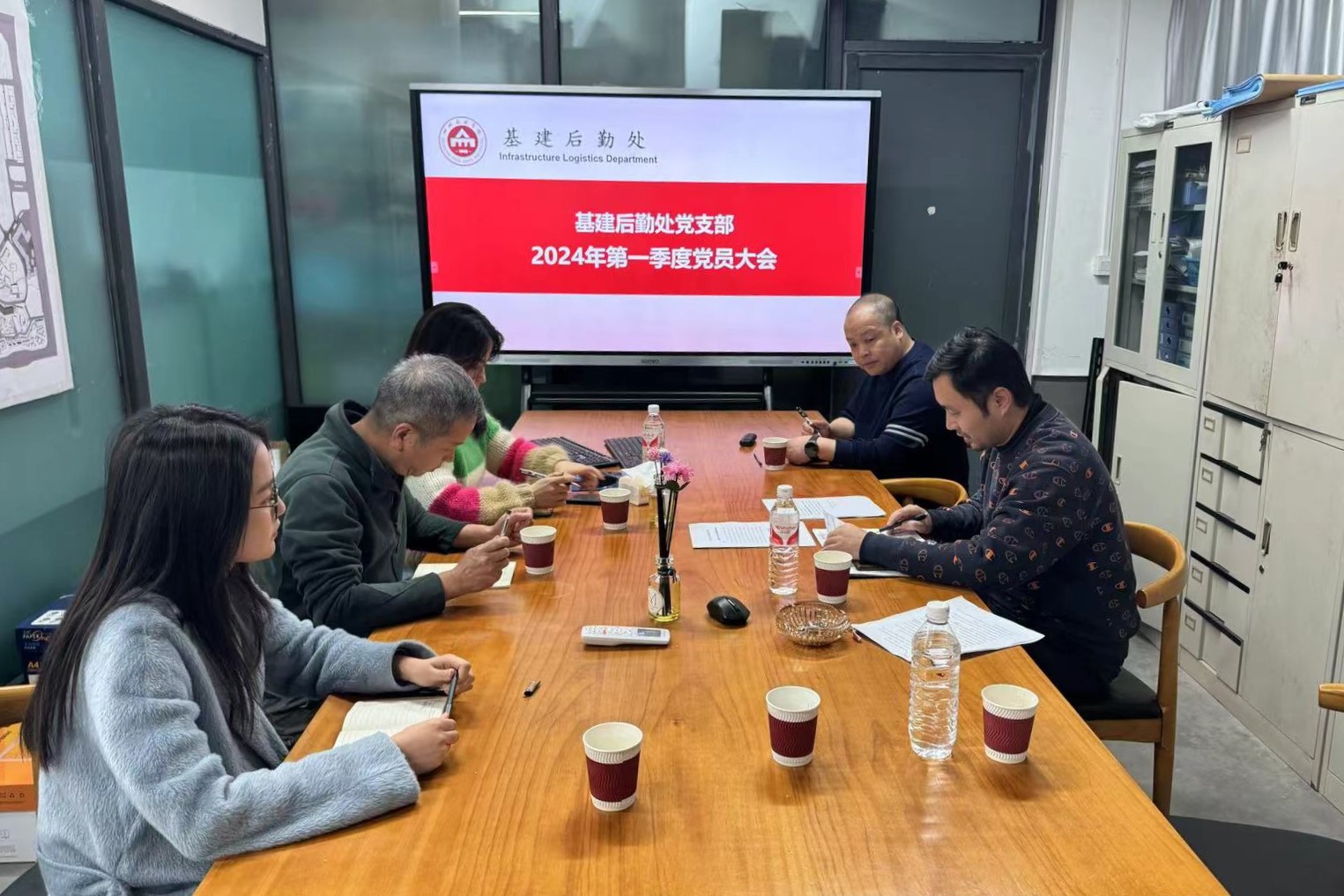 3月21日下午,机关党委基建后勤处党支部在虎溪校区行政楼114室召开全体党员大会,会议由党支部书记吴杨主持,支部全体党员参会。