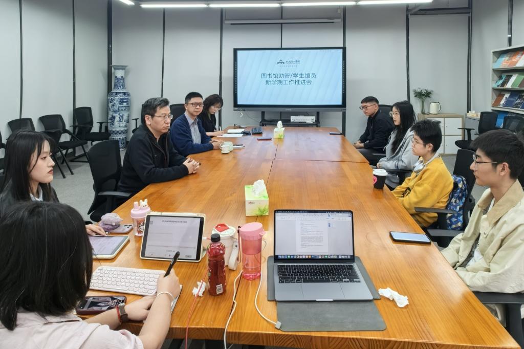 为促进图书馆与读者的良性互动,提升图书馆服务和文化建设活力,我校图书馆吸收培育了一批热爱阅读、责任心强、踏实肯干的学生参与图书馆工作。3月22日,图书馆学生馆员新学期工作推进会在虎溪校区图书馆一楼写作中心举行,图书馆馆长杨吟兵、副馆长屈波,负责学生馆员团队管理的老师、全体研究生助管和本科生馆员参加会议。