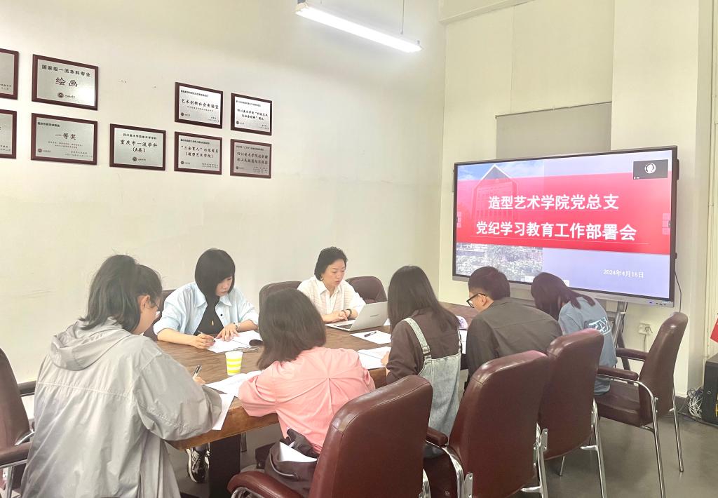 会议传达了学校党纪学习教育动员部署会会议精神,学习了《中共四川美术学院委员会关于开展党纪学习教育的实施方案》,并就学院党纪学习教育作出安排部署。一是通过“三会一课”、主题党日等,原原本本学《中国共产党纪律处分条例》,推动《条例》入脑入心;二是结合党员思想和工作实际,党支部书记要在所在支部讲一次纪律党课;三是用好身边党风廉政教育基地、红色教育基地,加强警示教育,注重用身边事教育身边人,让党员、干部受警醒、明底线、知敬畏;四是要把学习贯彻《条例》情况作为民主生活会、组织生活会对照检查的重要内容,切实抓好整改落实。