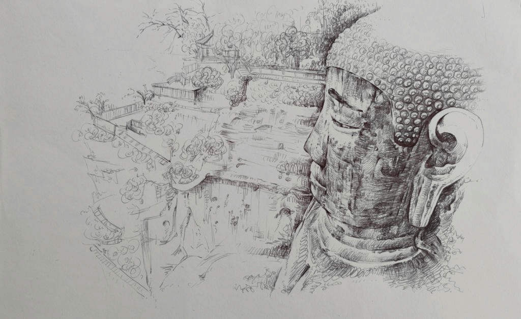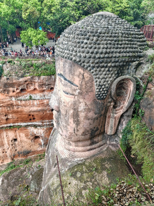 写生结束后,师生们前往乐山市区参观了乐山大佛,从大佛的建造历史、智慧设计、实用功能和保护修复等不同方面详细学习。随后工作坊一行来到乐山市博物馆进行文化考察,了解乐山本地历史文化,逐一参观了博物馆中的大佛陈列馆、陶瓷石刻艺术馆、书画艺术馆三个展馆。
