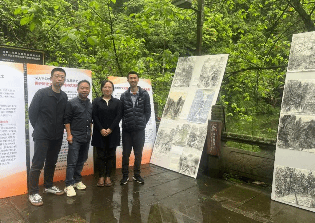 结合学生峨眉山水写生创作实践,工作坊师生在峨眉景区策划举办了四川美术学院“传承文脉、闻籁觉山”“大思政”主题教学暨学生写生作品展,吸引了来往游客的驻足观看和点赞,发挥艺术的社会美育和文化宣传作用。