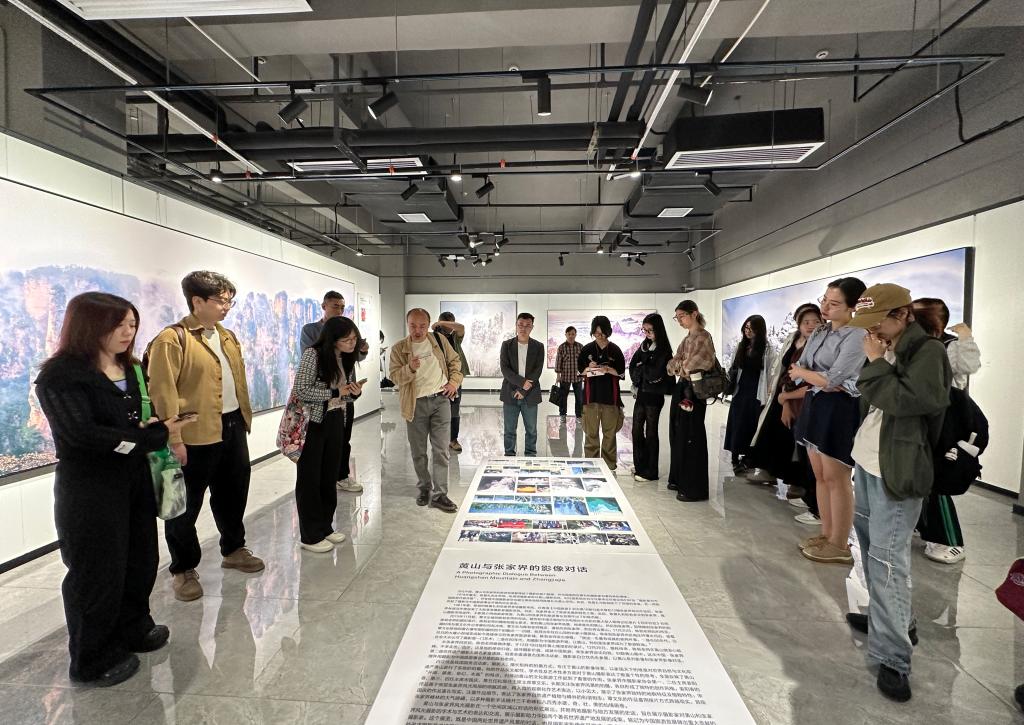 工作坊师生参观了大庸古城世界自然遗产影像馆及正在展出的张家界世界遗产摄影展,并与外国游客进行艺术交流,教育引导学生了解艺术作为跨越国家、种族、宗教的差别与壁垒、铸牢中华民族共同体意识、构建人类命运共同体的重要文化载体,立足全球视野,思考文化遗产保护传承的当代价值。