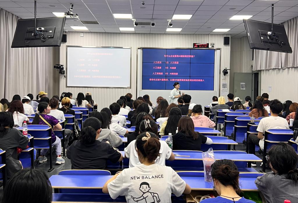 张雪松从传统简历筛选效率低、主观性强等弱点出发,引出了AI简历筛选在当今就业市场愈发普遍运用的趋势。随后介绍了AI筛选简历的关键点,及其背后隐藏的企业招聘需求,引导学生读懂招聘信息,结合岗位的胜任力模型有针对性地进行简历制作。最后介绍了AI面试的特点和难点,并且邀请全体学生进行了AI面试的练习,让学生切实地体会到在AI招聘时代,学习运用START法则的重要性。