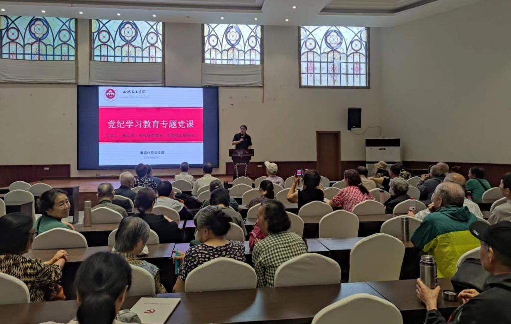 6月20日上午,离退休党总支邀请学校“两委”委员熊久阳为离退休党员讲授党纪学习教育专题党课。